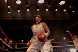 An important characteristic to note about Christy is that she is queer. Before leaving West Virginia and entering the elite boxing world, she had a romantic relationship with another woman. This, however, is not considered acceptable by her family or management. As Jim so eloquently summarizes early on in their professional relationship, "Nobody wants to see a butch girl fight." Determined to win while avoiding social stigma at all costs, Christy suppresses her true identity and morphs into a figure who is unrecognizable by her former self. Ignoring her instincts, she agrees to marry Jim. The manager/husband dynamic works for some time, but Jim's controlling and manipulative behavior continues to worsen the more successful Christy becomes. She eventually realizes that the biggest fight lies ahead of her, and that is going against her husband.